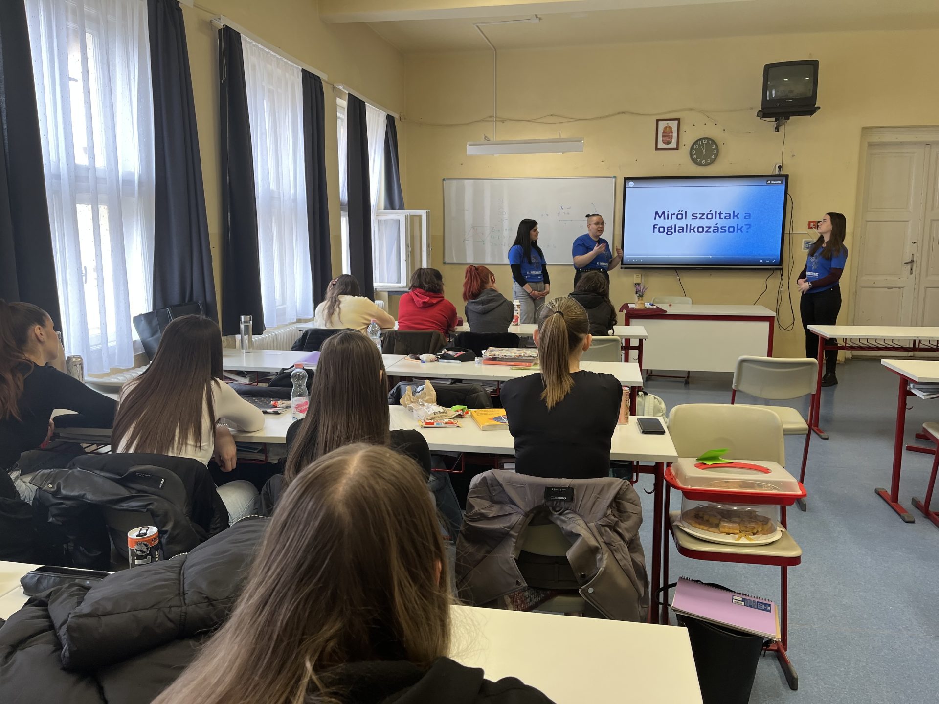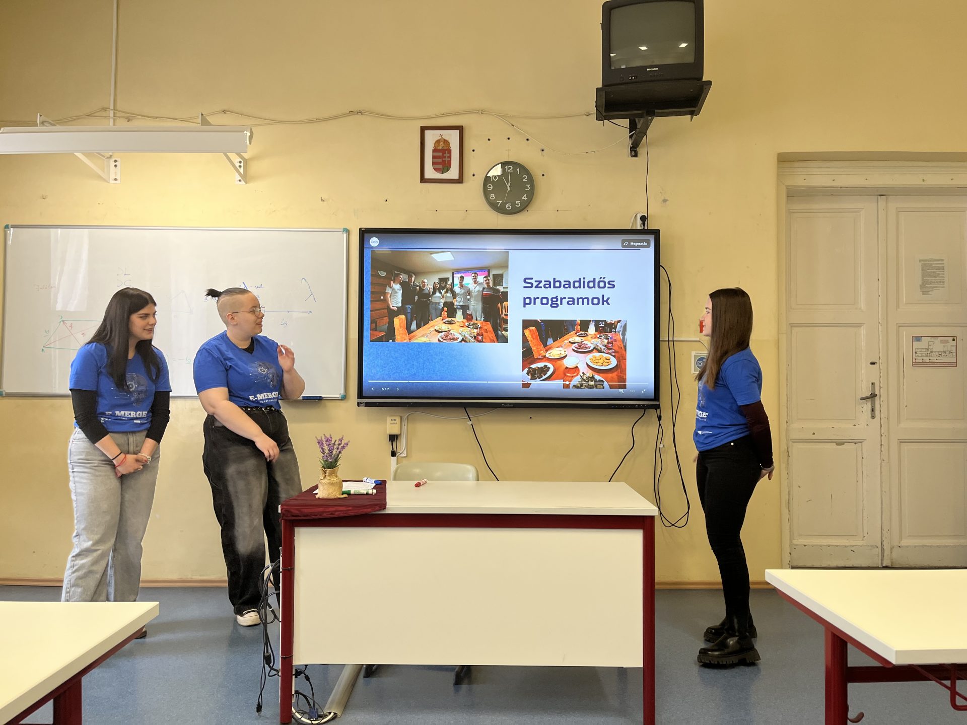 Réka, Mira, and Nóra gave a presentation to 20 classmates at Tolna Vármegyei SZC Apáczai Csere János Technikum és Kollégium. They shared their experiences from the E-Merge youth exchange, talking about the sessions, cultural nights, and free-time activities. They also expressed how meaningful the whole experience was and how they felt during their time in Czechia.