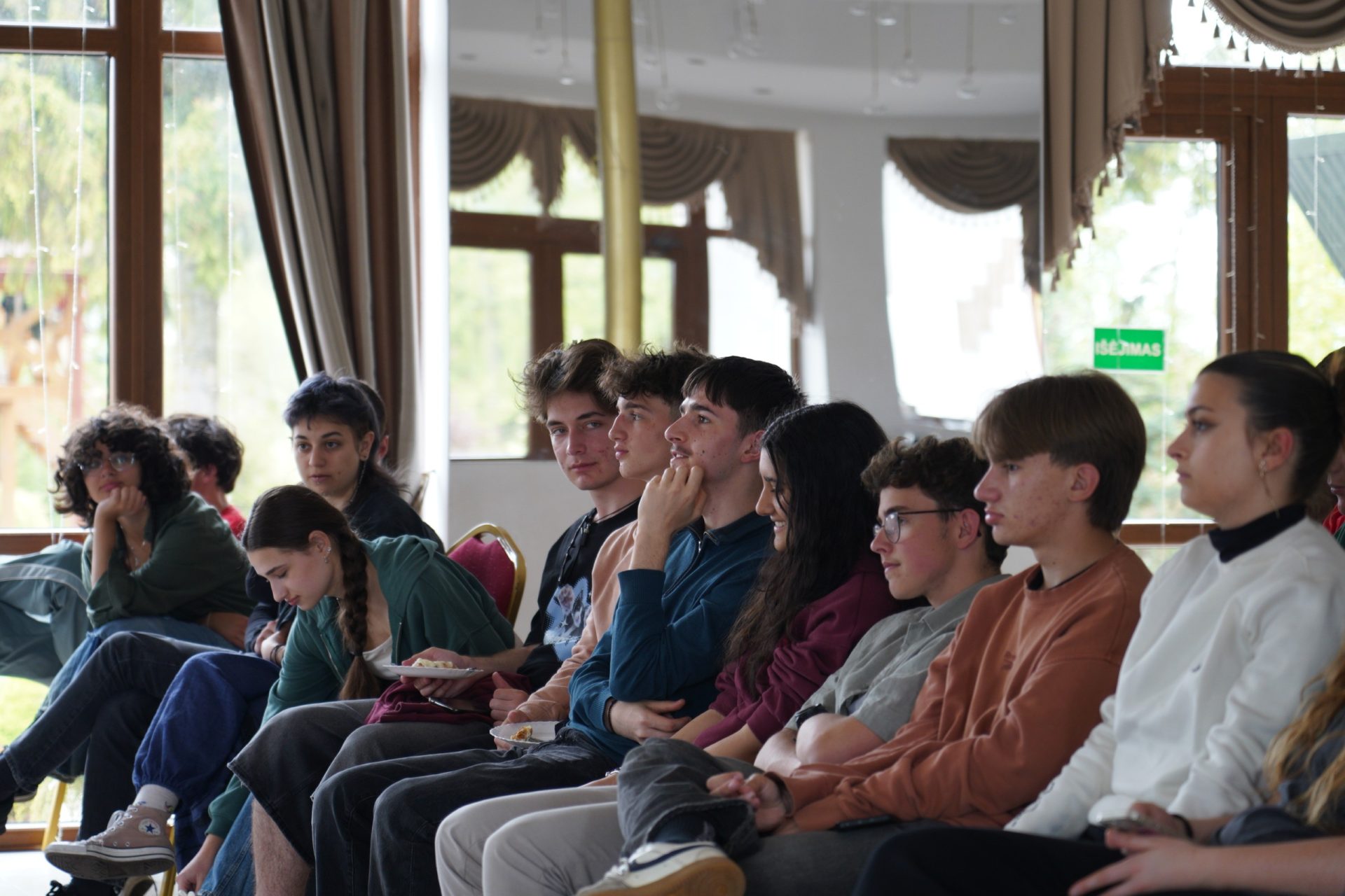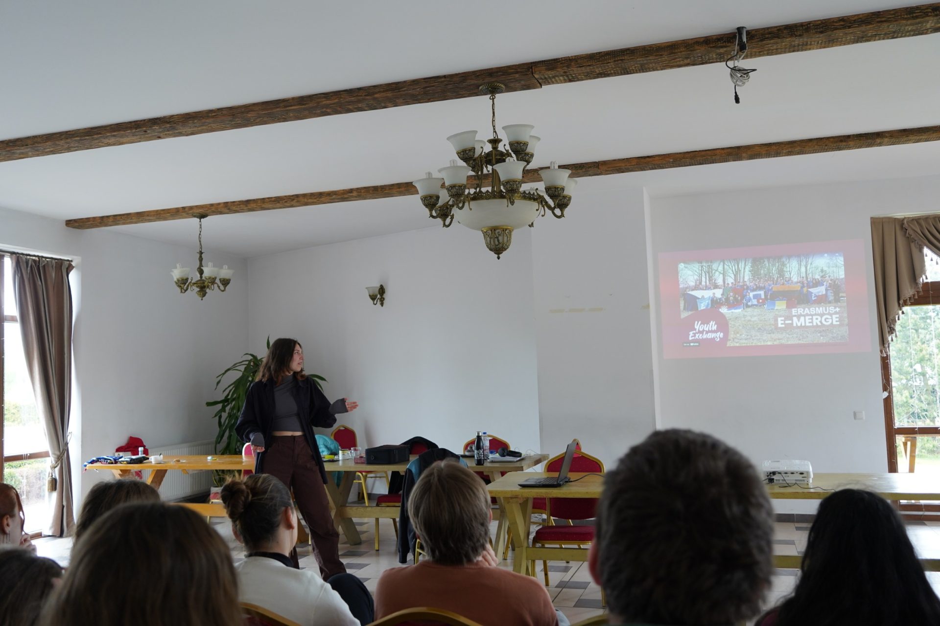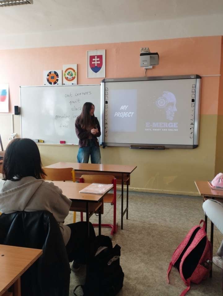 Rusnė and Saulė gave a presentation to 14 students at Marijampolės Rygiškių Jonas Gymnasium. Through a photo slideshow, they shared their experience in the E-Merge activity, talked about the sessions, the games, and what they learned. They also introduced E29 network, explained how to apply for future exchanges, and encouraged their classmates to give it a try.