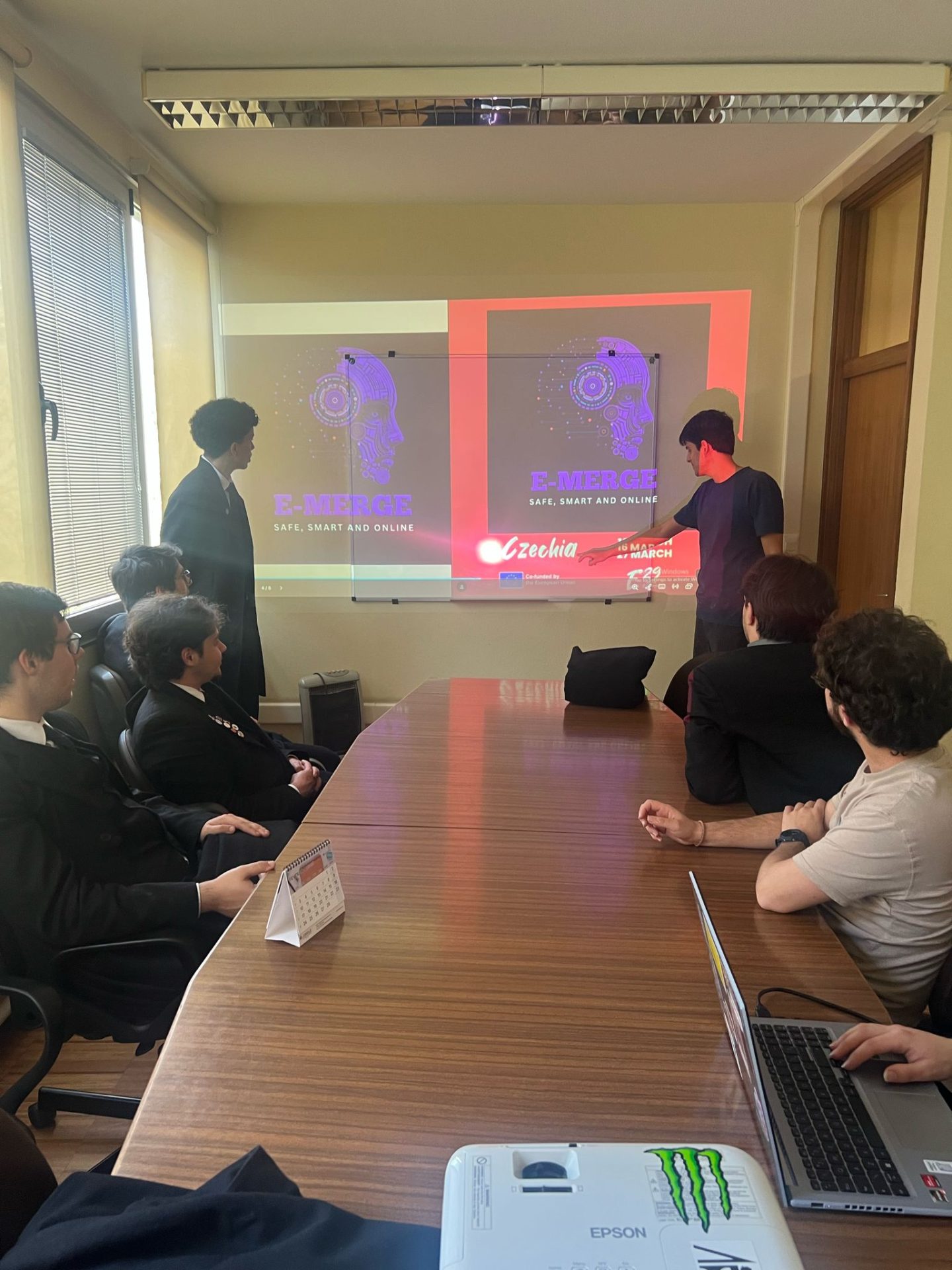 Kevin and Botond gave a presentation to 64 classmates at Tolna Vármegyei SZC Apáczai Csere János Technikum és Kollégium. They talked about their journey through the E-Merge activity—covering the travel, activities, topics, accommodation, and free time. They also introduced E29 network and highlighted the many benefits of participating in youth exchanges.
