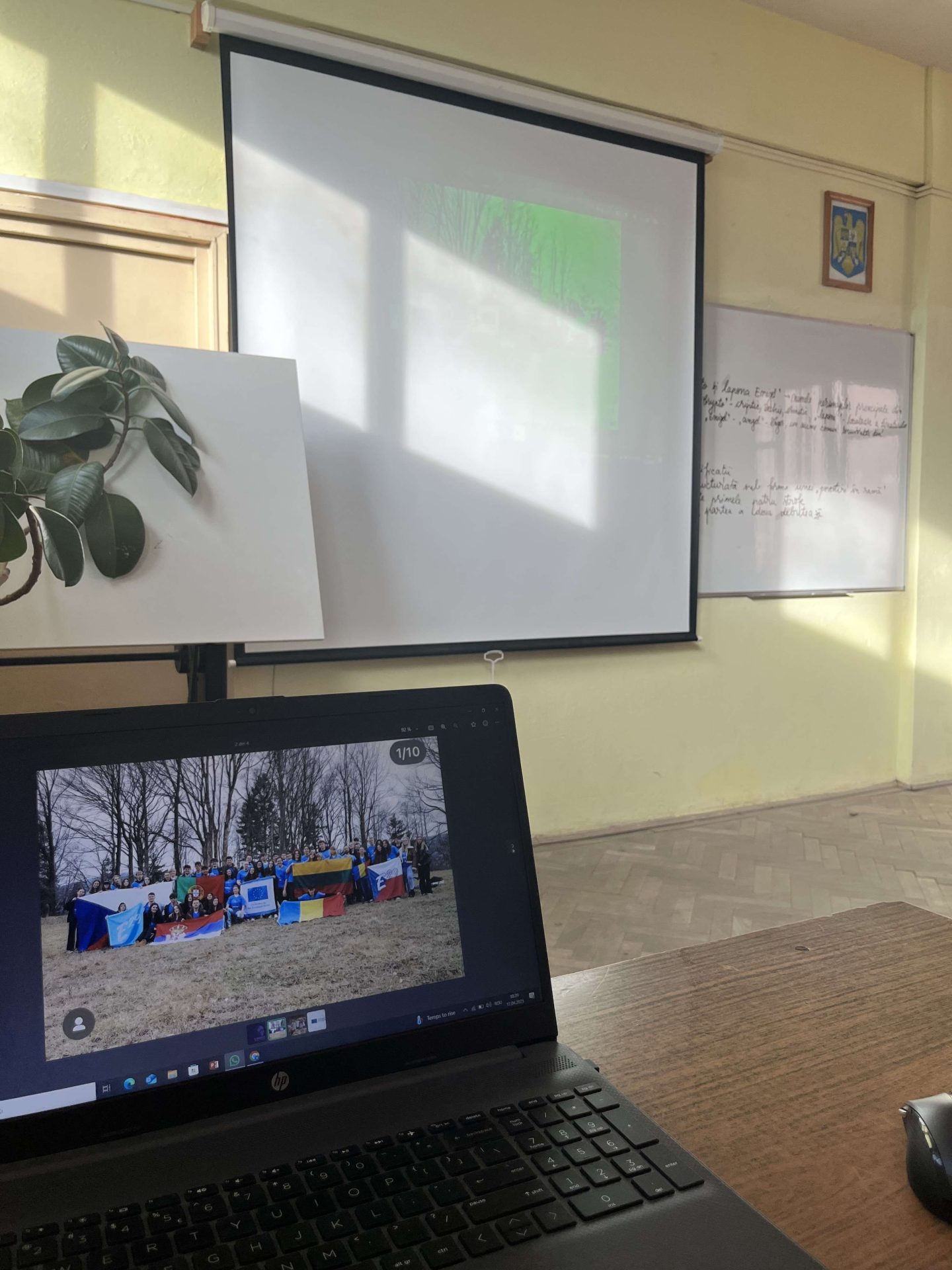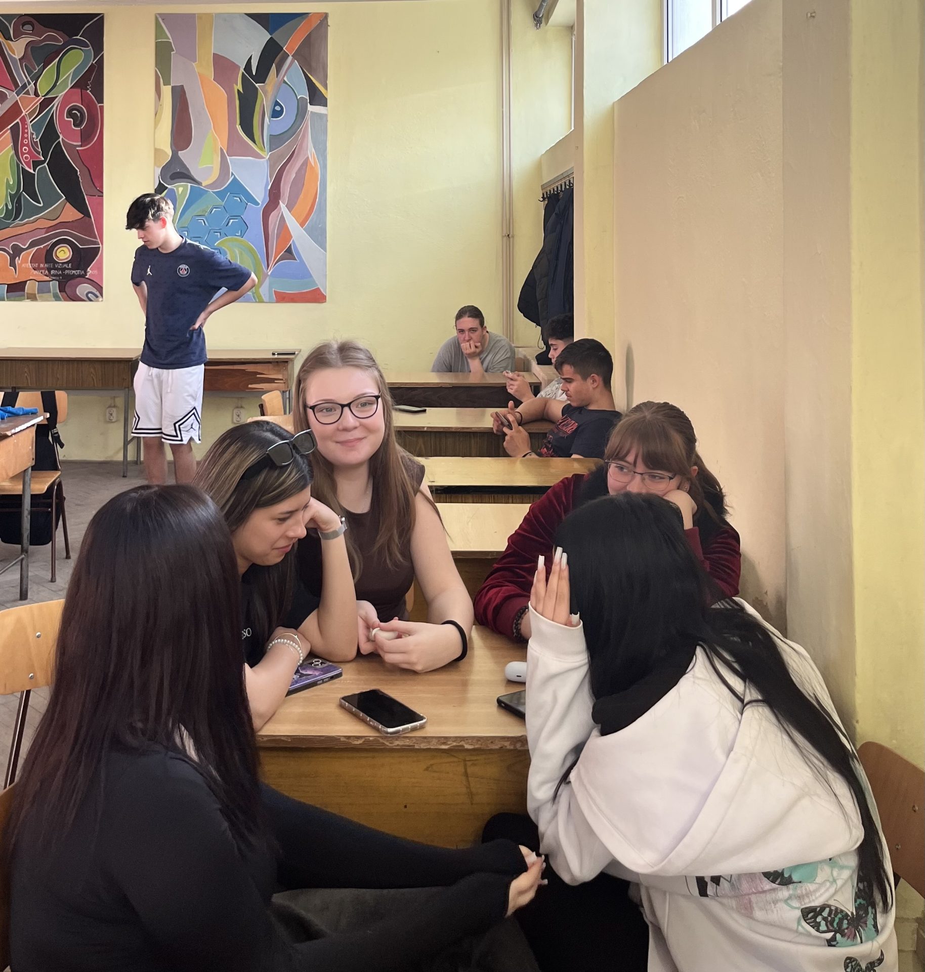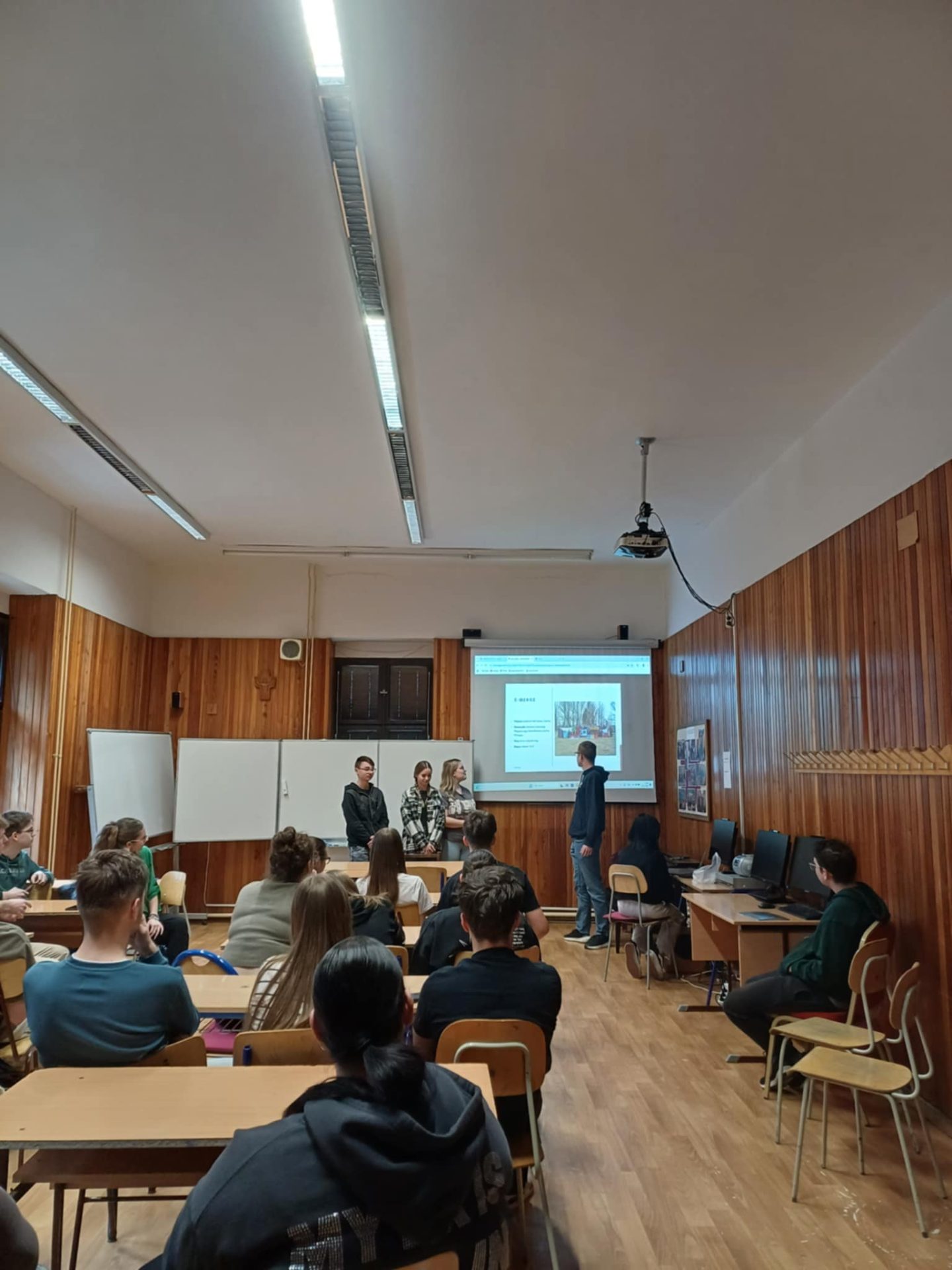 Robert, Matei, Alexa, and Adela presented their experience at Colegiul Național “Octavian Goga” to around 30 students. They shared a detailed recap of the activity, covering the location, sessions, friendships formed, and the unforgettable moments they experienced together.
