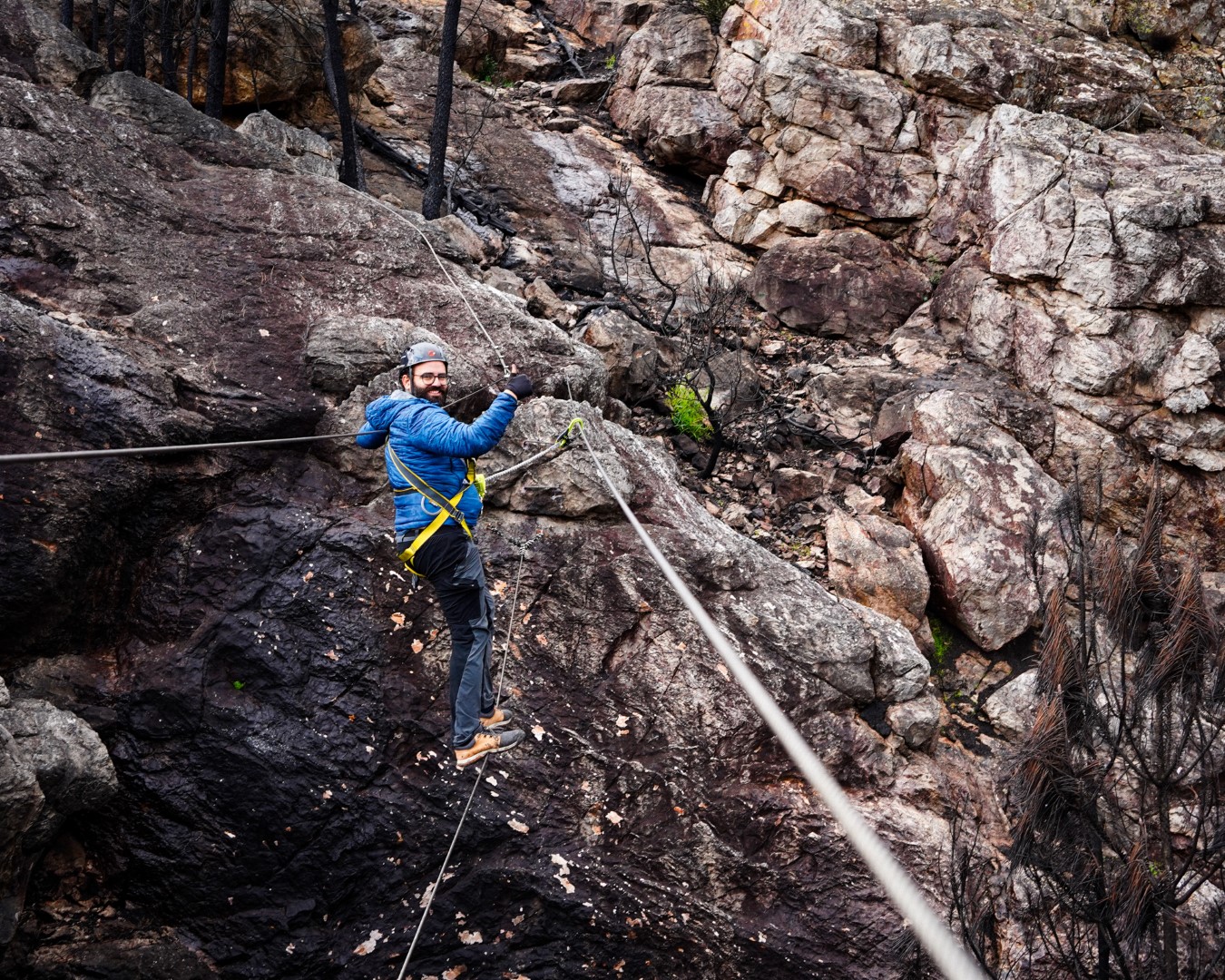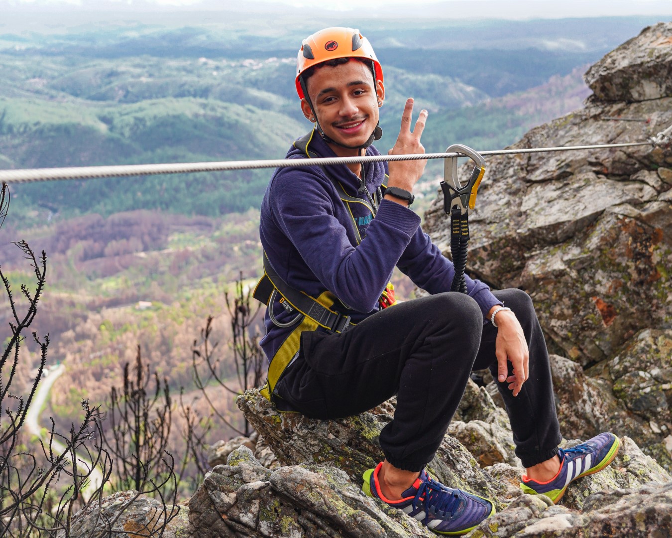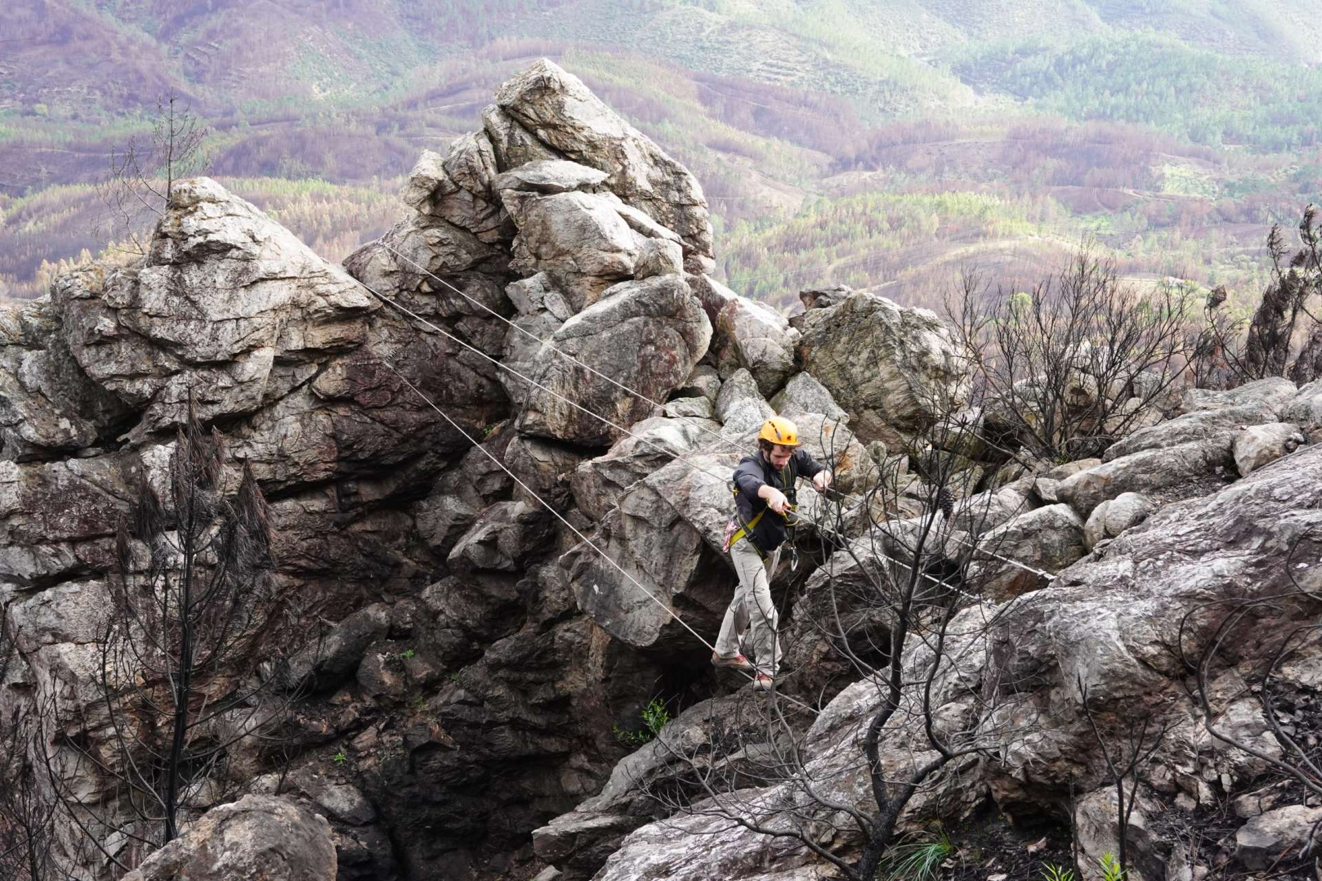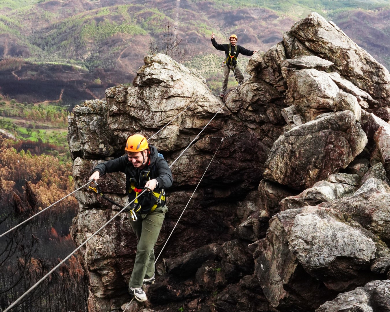 Sitting under a fire watch tower, this is one of the most complete Via Ferratas in Portugal, with many different sections allowing us to try all kind of different obstacles and even more perfect for trying some of the safety exercises.
