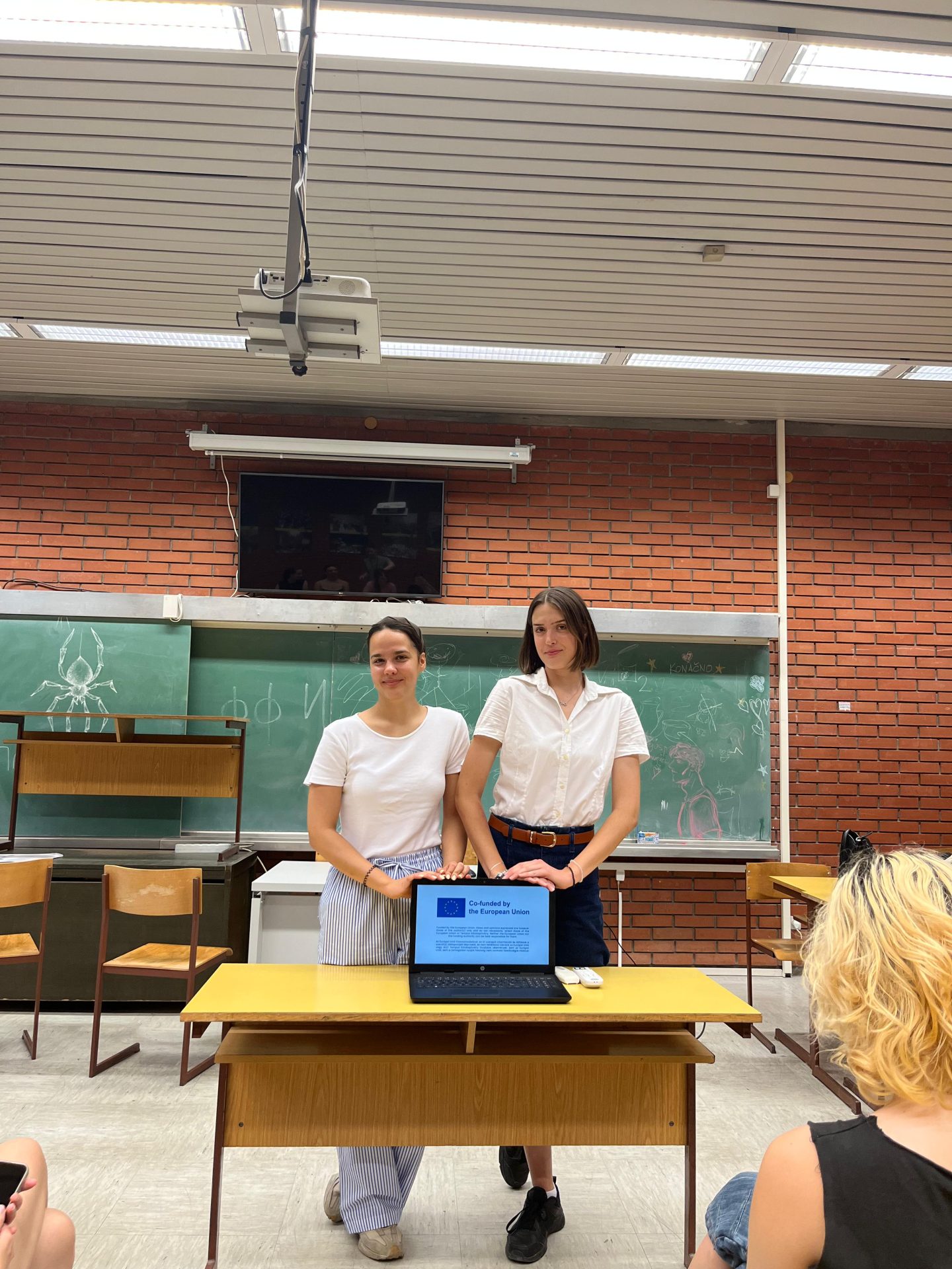 Dissemination by Antonia and Vilte, presented to 39 young people.
