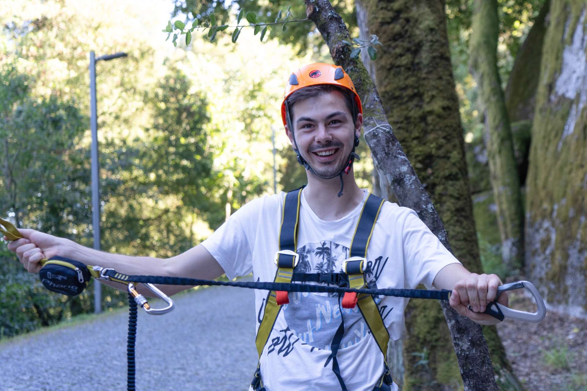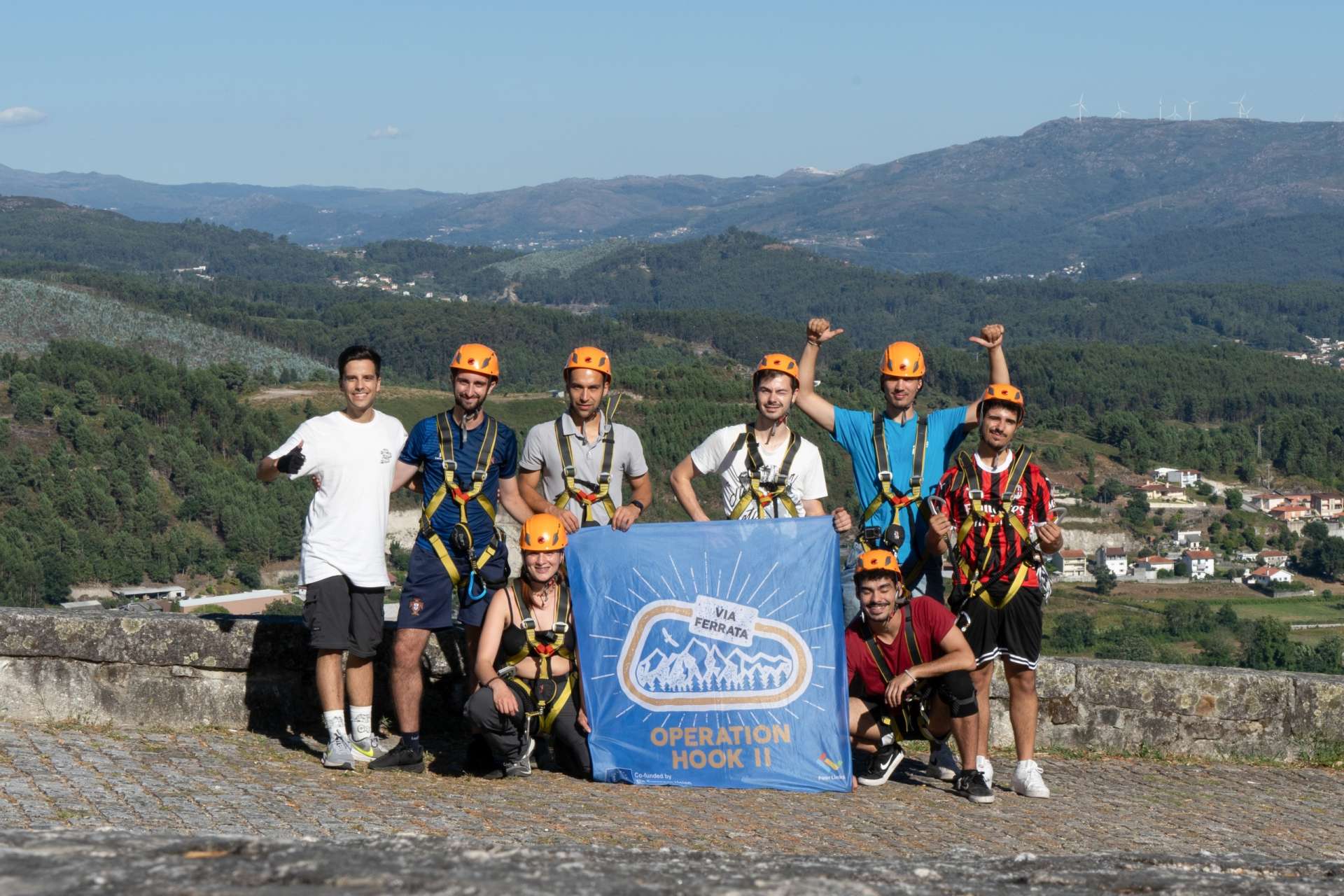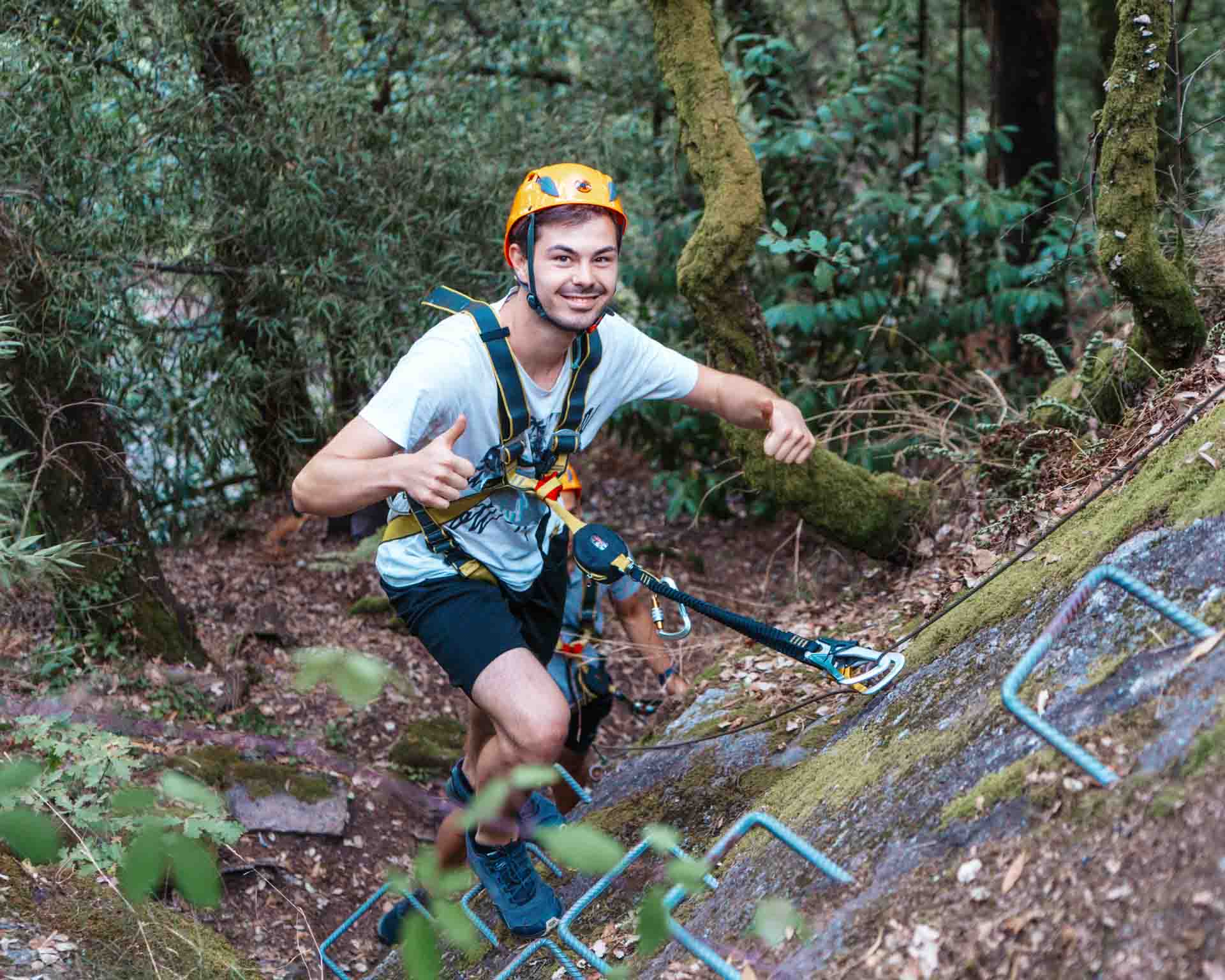 It was August 2024 and a group participants met in Póvoa de Lanhoso to explore this exciting via ferrata route. Located only a few minutes from the city of Braga, this route is short and beginner-friendly, with easy sections that allow newcomers to become familiar with the sport while more seasoned participants enjoy a relaxed climb. We started with an introduction to the equipment, guiding everyone on how to use it properly, along with some basic safety practices to ensure a smooth and enjoyable climb. This via ferrata allowed everyone to take their time and enjoy the scenery, while learning about safe techniques to carry forward.